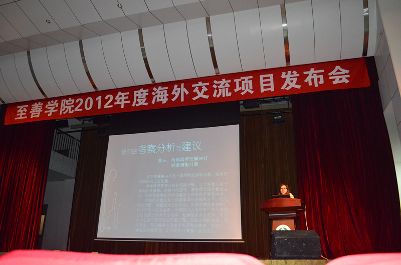 3月7日下午,至善学院第三届香港冬令营成果汇报会暨2012年海外交流项目发布会在南区大学生活动中心如期举行。本次汇报会由参加该次香港游学的同学独立组织,至善学院分团委书记魏珍吉老师出席了汇报会。