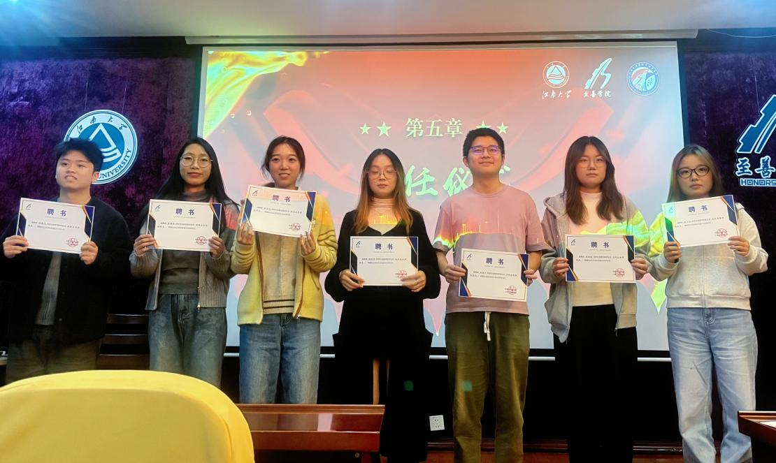 一纸聘书承薪火,一份担当赴新程。聘任仪式将会议推向高潮。在庄严而热烈的气氛中,新一届学生会成员依次登台,郑重接过象征责任与使命的聘书。这份聘书不仅代表着荣誉,更承载着沉甸甸的责任,标志着第十六届至善学生会正式启航,开启了服务同学、锻炼自我的新征程。